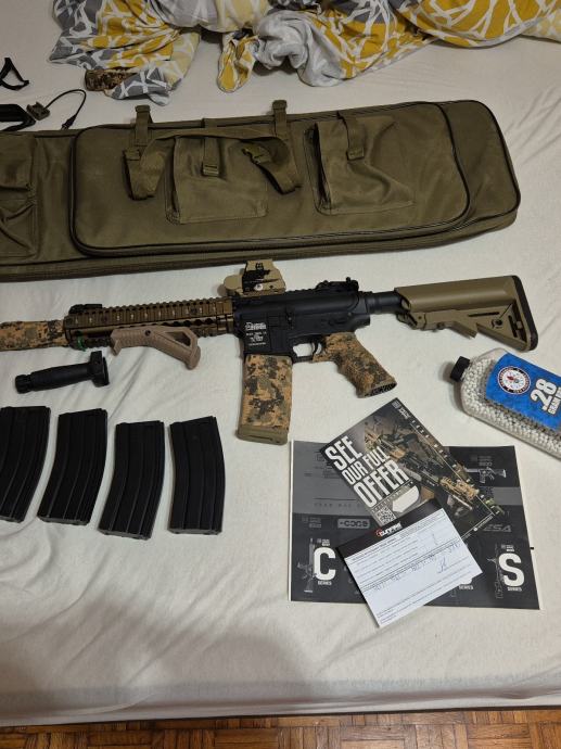 Prodajem airsoft m4 daniel defense sa 6 okvira, red dot, 2 forgripa, supresorom i torbom