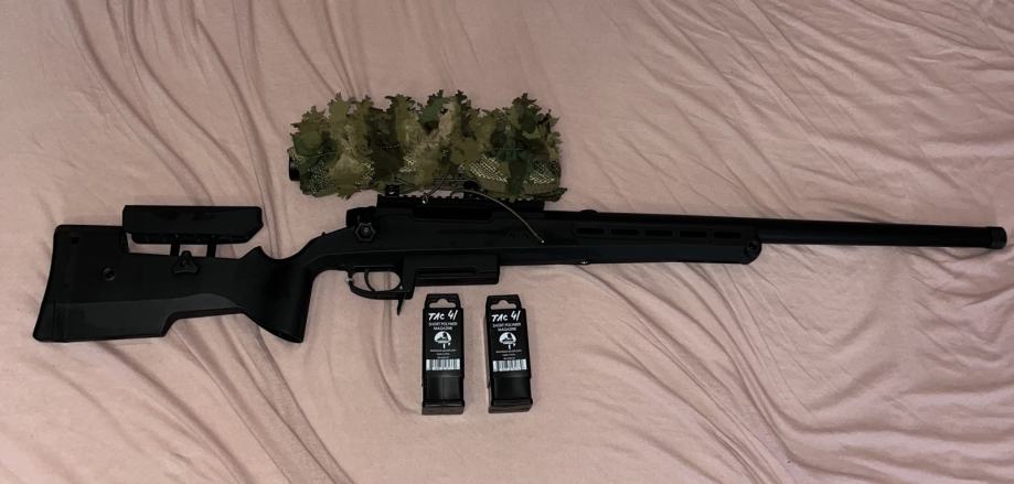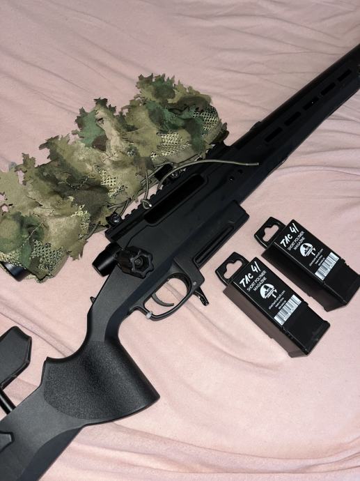 Replika korištena na 2 susreta, nažalost mijenjam loadout pa mi ne treba više.. ima rapax 3 oprugu, domet je izvrstan, nema nikakvih problema u radu. Jedino "oštećenje" je vidljivo na zadnjoj slici, ispod ručice za natezanje, to je mana svakog TAC-41 snajpera.