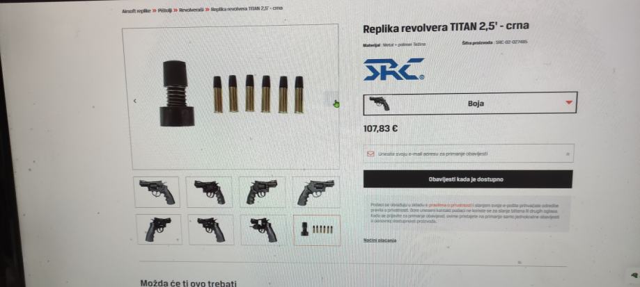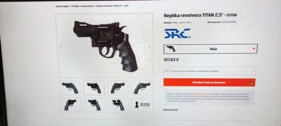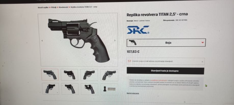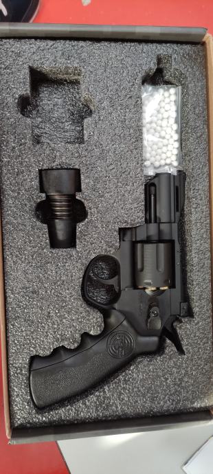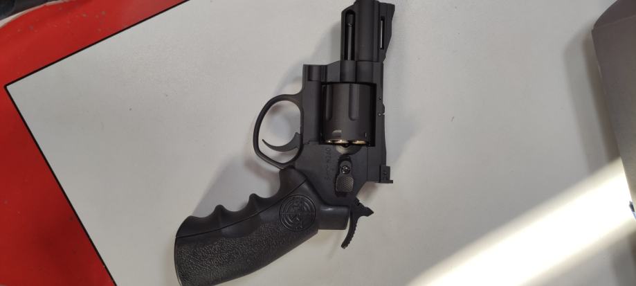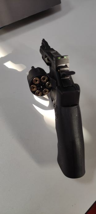 Čvrsta replika revolvera tvrtke SRC izrađena gotovo u potpunosti od metala . Jedini dio od polimera je drška pištolja. Replika ima realističan lažni sustav ubacivanja granata u rotirajući bubanj - točno kao u slučaju revolvera za bojevu pušku. Svaka granata nosi jedan BB. Set uključuje 6 školjki i namjenski speedloader koji omogućuje da jednim pokretom postavite 6 školjki u bubanj.