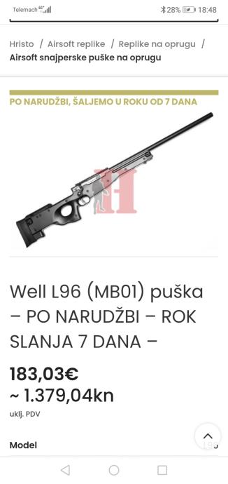 WELL L96A1 je airsoft replika moderne britanske snajperske puške u naoružanje postrojbi mnogih zemalja. Odlikuje se pouzdanim radom, modernim i kvalitetnim materijala te visokom preciznošću.
