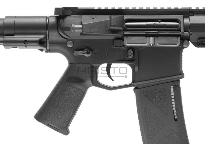 Ova airsoft replika duljine 590 do 692 milimetara koristi standardni spremnik AR15 formata, teži 2500 grama i podržava poluautomatski i automatski način paljbe