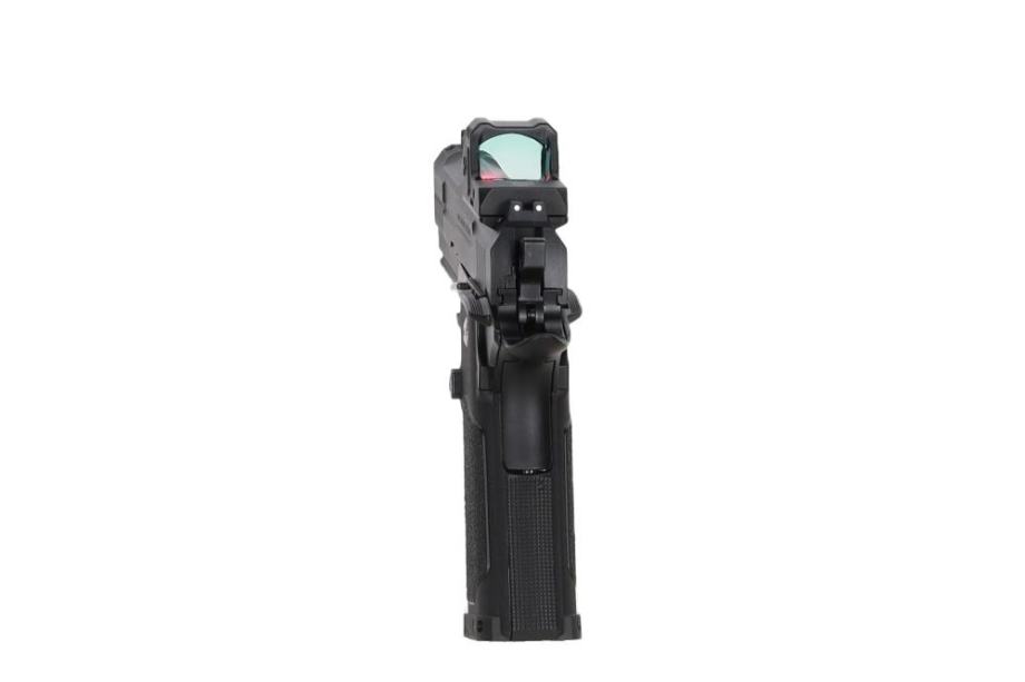 Optics Ready (OR) verzija ima tvornički montiranu pločicu za red dot ciljnike, pa se optika montira direktno na zatvarač bez dodatnih preinaka. Plinski (green gas) pištolj odlikuje se vrlo dobrom kulturom rada, pouzdanošću i kvalitetnom izradom. Metalni zatvarač izrađen CNC obradom opremljen je fiber-optic mušicom, a ispod cijevi nalazi se RIS šina za montažu taktičke lampe ili lasera. Klasična crna završna obrada daje pištolju čist, taktički look koji se lako uklapa u svaki loadout.