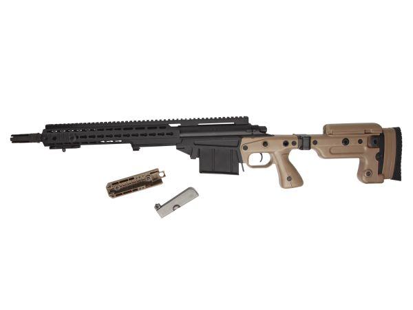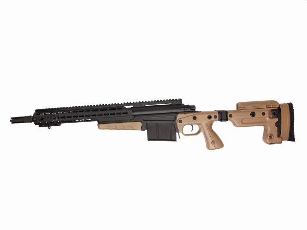 Ova potpuno licencirana snajperska puška Mk13 MOD7 nudi besprijekorno iskustvo gađanja za snajperom i može se pohvaliti mnoštvom značajki kao što su glatko djelovanje zatvarača, sklopivi kundak, podesivi oslonac za obraze, više QD točaka remena, 20 mm picatinny šina za optiku i CNC obrađeni aluminijski KeySLOT rukohvat koji omogućuje ugradnju dodataka kao što su laseri, lampe i bipodi. Mk13 se napaja iz skrivenog spremnika od 50 metaka u donjem prijemniku.