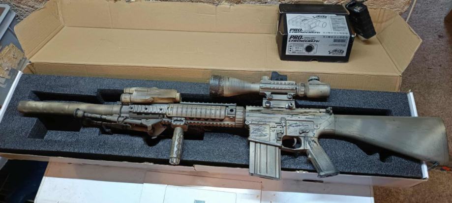 Prodajem Classic Army sr25 repliku (DMR). Sa 0.45 bb 2.3J. Domet cca 80 metara. Promijenjeni potreni dijelovi,replika dolazi sa 4 midcap+1hicap,nogare,scope,prigusivac. Cijena nije fiksna.