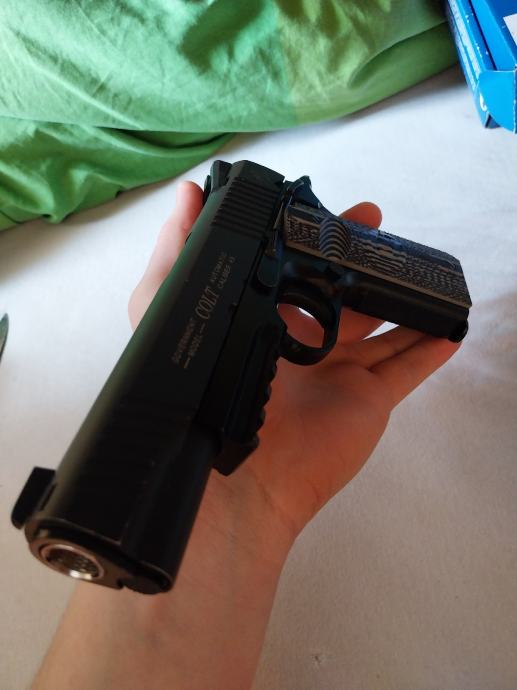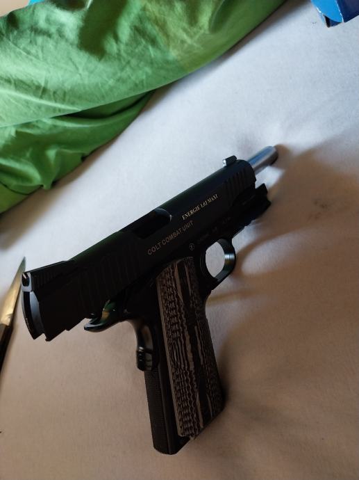 Prodajem airsoft repliku pištolja Colt 1911 CO2 GBB (full metal) zbog manjka vremena za bavljenjem airsoftom. Korištena je jedamput na airsoft susretu, te ispaljeno svega cca 5 spremnika iz pištolja, tako da je ostao praktički ko nov. Ima 340 fps sa 0.25 kuglicama koje također prodajem i čija se udaljenost moze povečati mjenjanjem hop-upa.