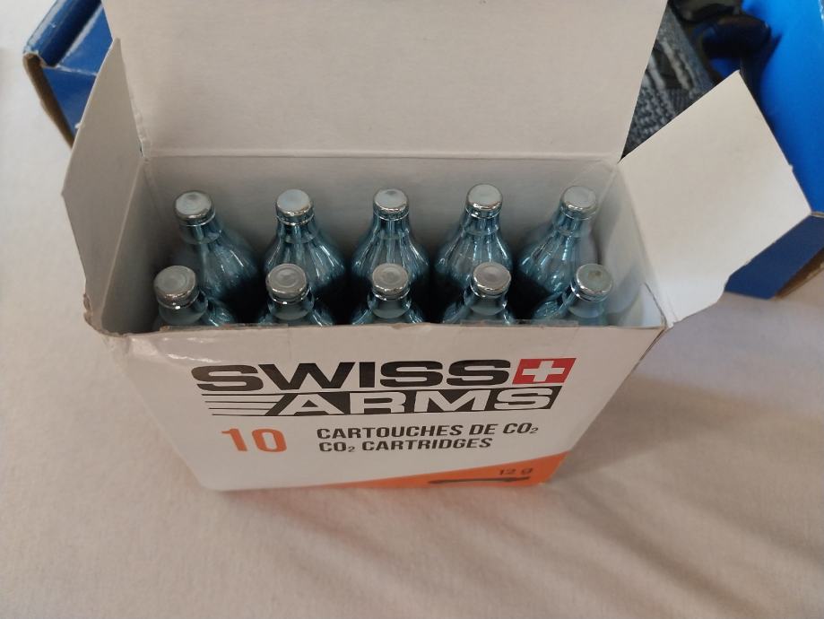 Prištolj je kupljen preko hristo trgovine za koji posjedujem i račun. Uz pištolj se dobiva 10 komada CO2 ampula, 2 CO2 spremnika, inbus ključ i adapter za prigušivač.