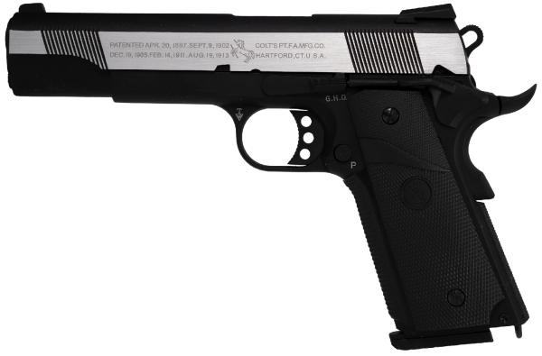 Legendarni Colt 1911 u poboljšanoj izvedbi Combat. Airsoft pištolj pogonjen zelenim plinom, uz GBB (gas blowback) funkciju. Izrađen iz metala, uz licencirane oznake te gumirane obloge drške. U odnosu na klasični 1911, poboljšani su ciljnici, okidač i udarač.