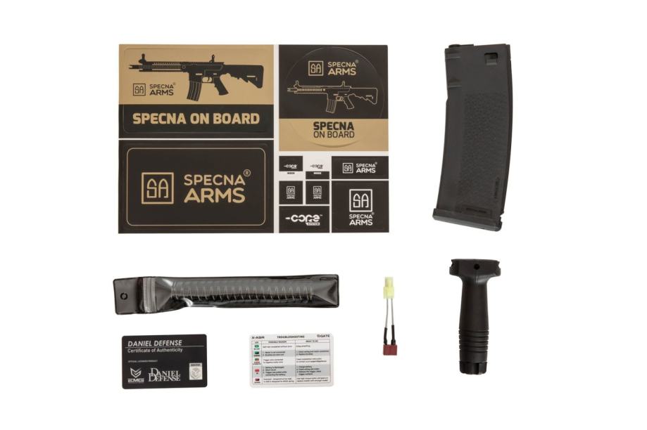 The replica was manufactured in cooperation with EMG Arms brand. The carbine has engraved licensed markings of Daniel Defense® - a firearms manufacturer from the USA, which since 2002 specializes in providing various variants of the AR15 and accessories, also on special requests by USSOCOM.