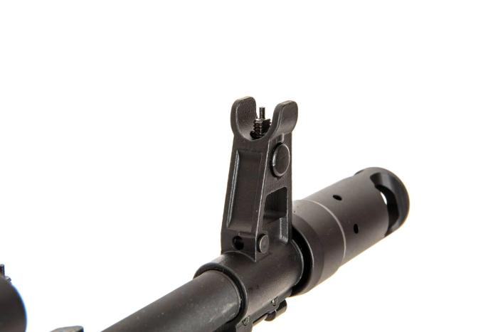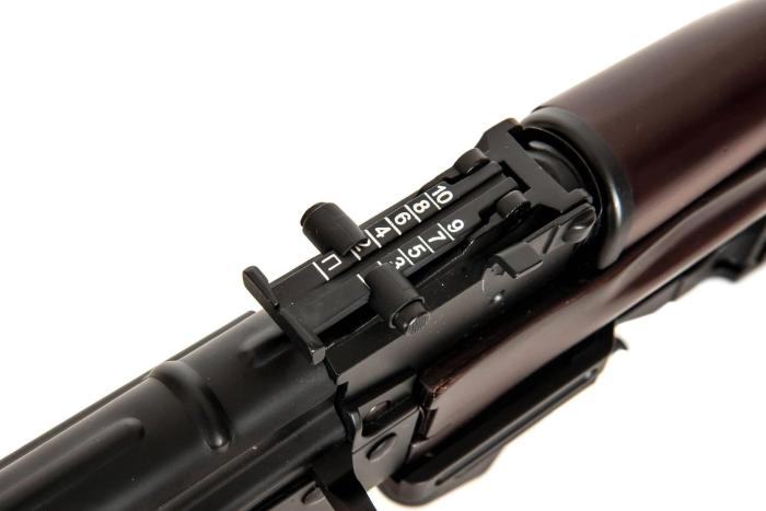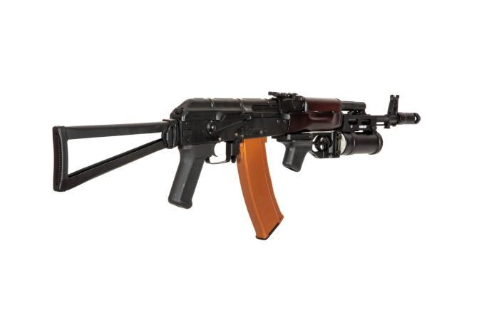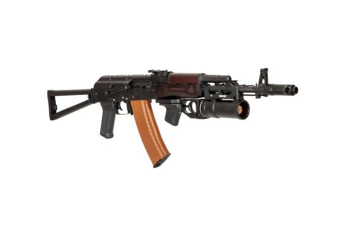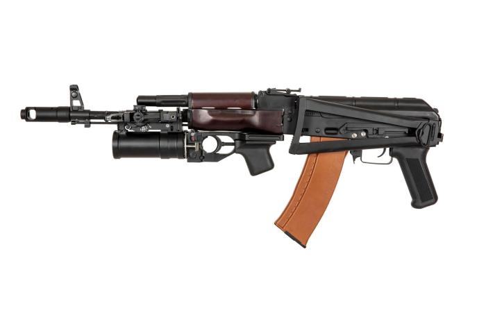Replika izrađena iz čelika (tijelo, poklopac tijela, kundak s bravom, selektor, šipka za čišćenje), drveta (rukohvat), polimera (pištoljska drška, spremnik) i drugim metala (cijev, ciljnici). Baterija (nije u kompletu) je smještena ispod poklopca tijela. Gearbox je robusni V3. Uz repliku se isporučuje bacač granata s jednom granatom na zeleni plin, kapaciteta 32 kuglice.