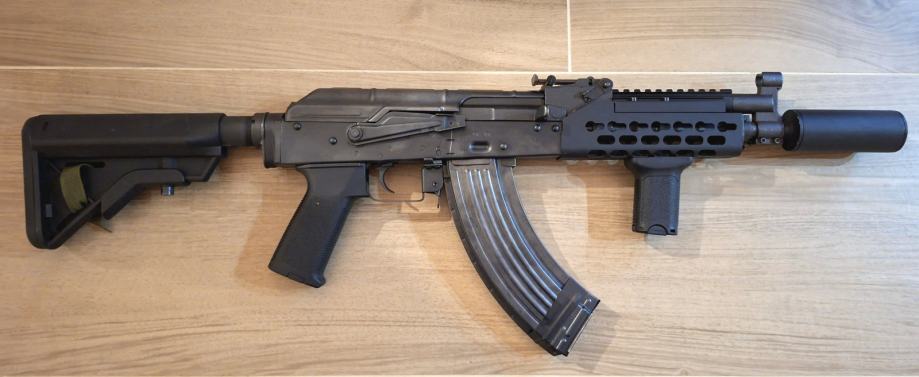 • Materijali: Tijelo od hladno prešanog čelika, CNC aluminijski rukohvat (handguard), polimerni kundak i drška.