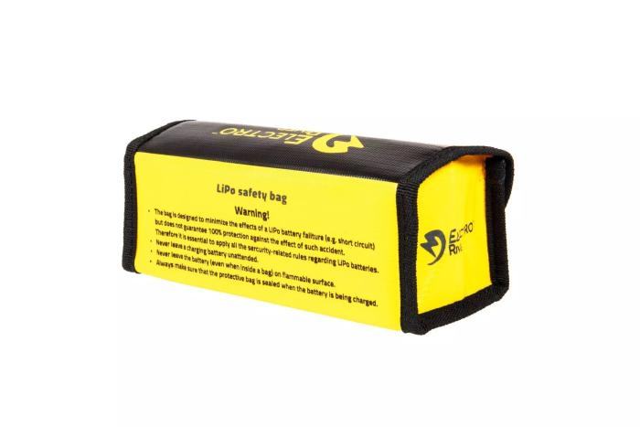 Electro River LiPO Safety Bag dizajnirana je za minimiziranje posljedica mogućeg kvara Li-Po baterije, kao što su kratki spoj, pregrijavanje ili proboj ćelije. Iako ne pruža stopostotnu zaštitu, znatno smanjuje rizik od požara ograničavanjem dotoka zraka i time gasi plamen u ranoj fazi.