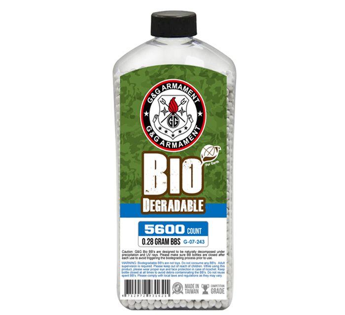 Biorazgradive airsoft kuglice vrhunske kvalitete (promjer 5.95mm +/- 0.01mm !), proizvođača G&G. Mase 0.28g, primjerene su snažnijim airsoft replikama (400fps i više). Pakiranje od 5600 kom.