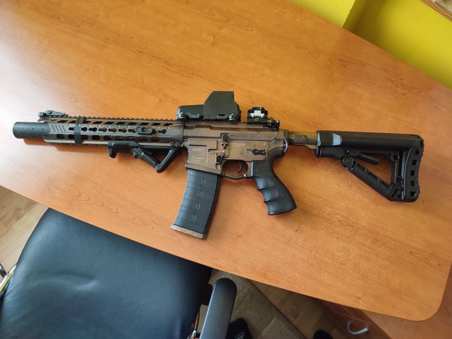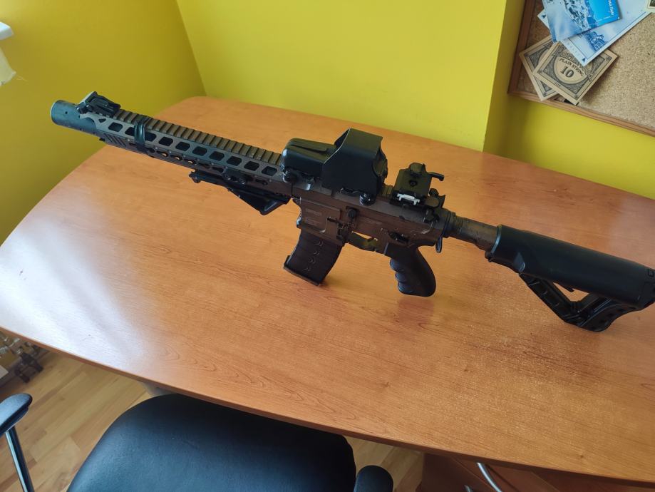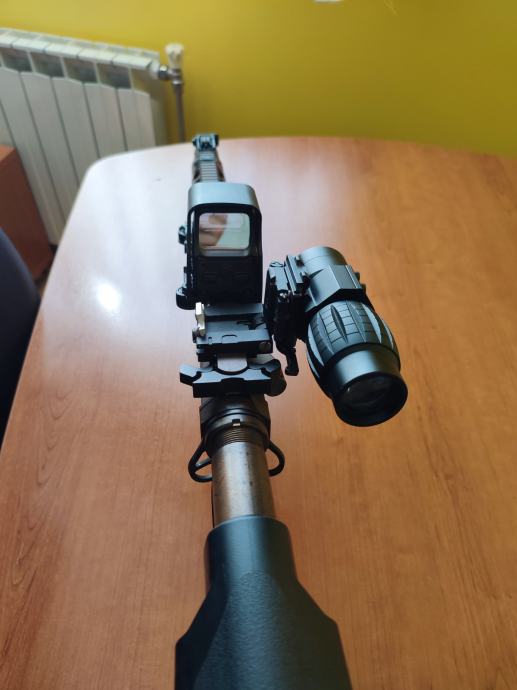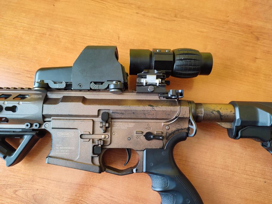 Replika dolazi sa baterijom, punjacem, 6 spremnika (5 midcapa, 1 hicap), red dot holo nisan, i 3x magnifier.