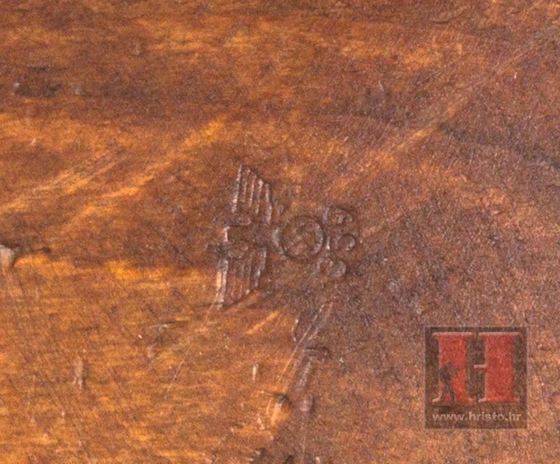 - na finiš je nanesena suha pastela u prahu, crvenosmeđe boje, kako bi dočarala oružje koje je, uslijed ratnih uvjeta i nebrige, počelo oksidirati
