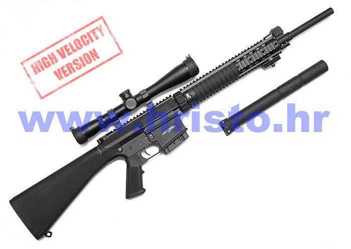 G&G SR25 je full metal airsoft replika izrađena od magnezija, pa je osim čvrstoće i vrlo lagana. Isporučuje se s brzomontirajućim (QD) prigušivačem koji prikriva položaj strijelca pri pucanju. Idealan je kao baza za poluautomatsku snajpersku pušku.