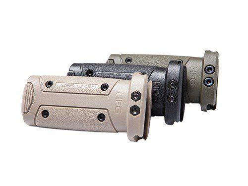 HERA Front grip (HFG) je lakomontirajući prednji rukohvat u TAN boji, izrađen od polimera ojačanog staklenim vlaknima. Zbog kratke izvedbe manje zapinje za opremu, dok je vanjština atraktivnog dizajna, uz orebrene protuklizne površine. U unutrašnjost se može smjestiti mali set alata i sl.