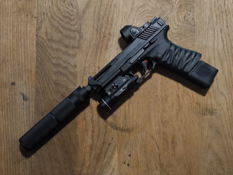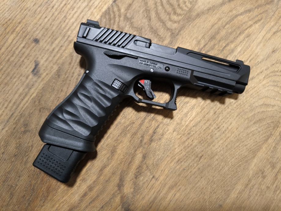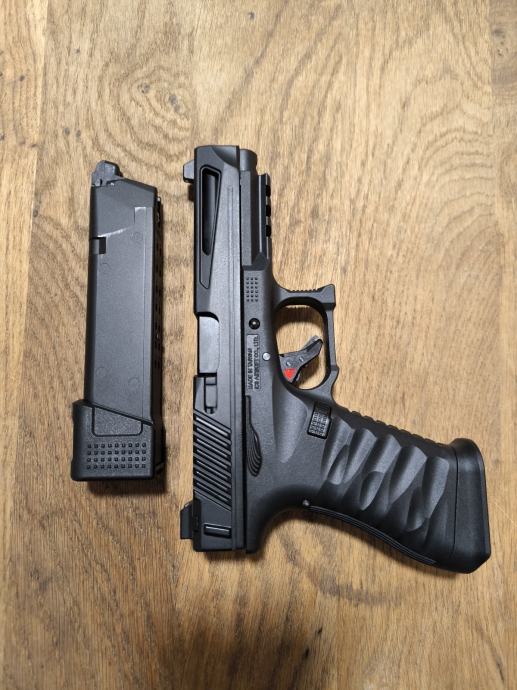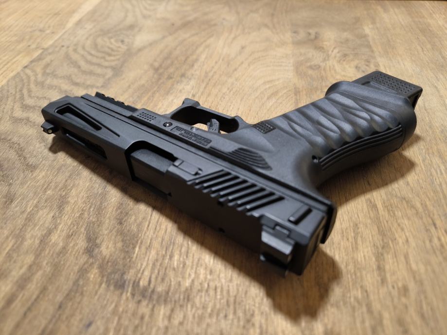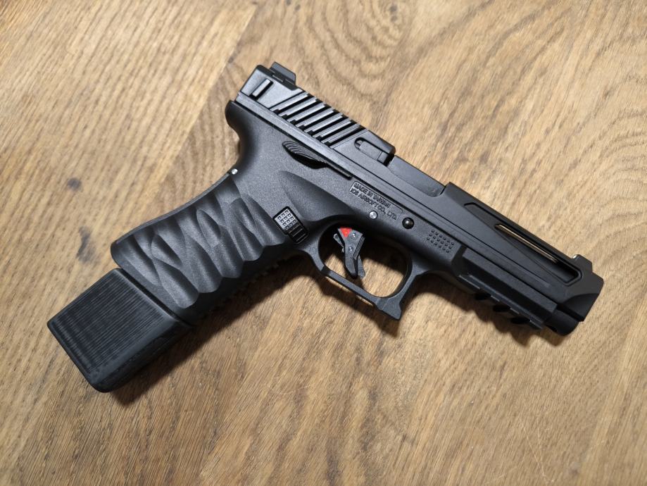 Pištolj je nalik Glock 18 ali sa unaprijeđenom unutrašnjosti i dodacima iz kutije: