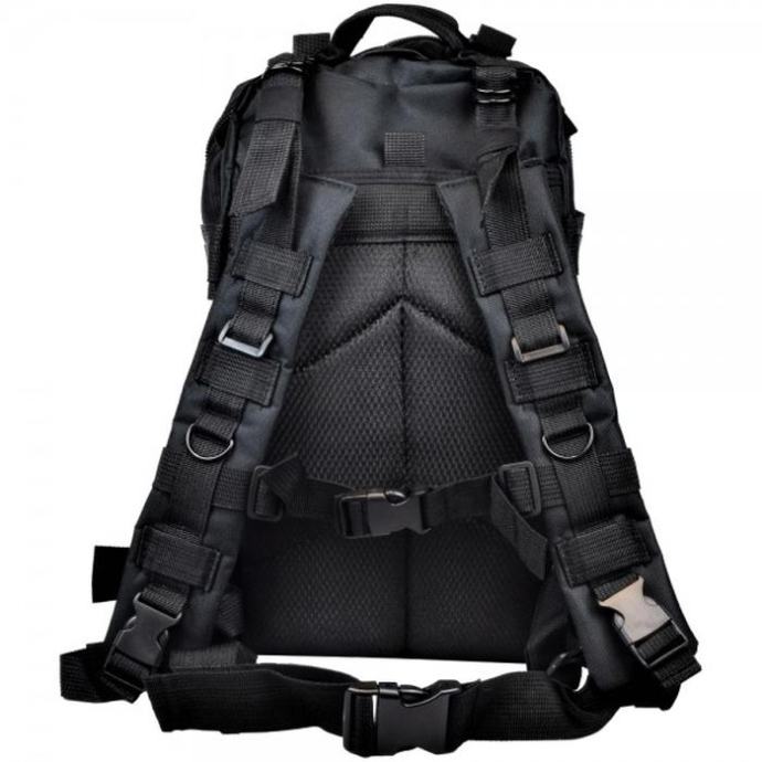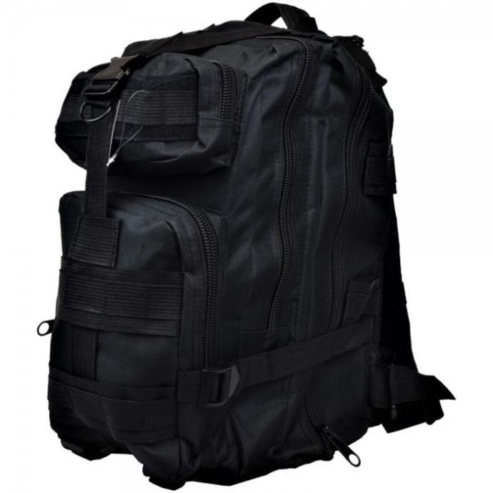 JS Tactical Royal Backpack 25L Black. Kapacitet 25 litara. Podstavljena leđa i naramenice. MOLLE prihvati. Remen za struk i remenčić na prsima. Dva glavna odjeljka s dvostrukim patent zatvaračem. Dva prednja odjeljka s dvostrukim patent zatvaračem. Vanjske dimenzije: 45x29x33cm.