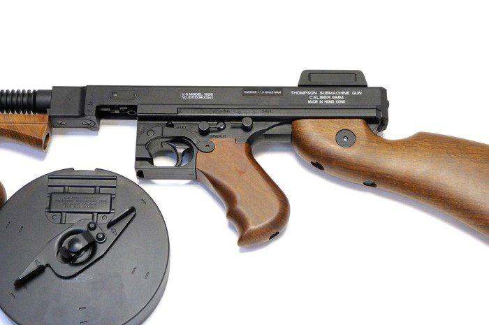 King Arms Thompson M1928 dolazi u full metal izvedbi s metalnim bubnjem velikog kapaciteta, dok su drvene obloga imitacija drveta, izrađene iz polimera. Iako je replika starog oružja, na terenu se više nego uspješno nosi s mnogim replikama modernijeg naoružanja. Izlazna brzina: 400 fps s kuglicama od 0.20g. Dolazi u kompletu s jednim bubanj spremnikom, uputstvom i šipkom za čišćenje.