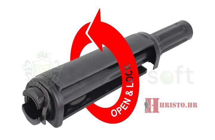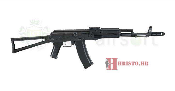AKS-74 je verzija AK-74 modela opremljena s preklopnim kundakom, dizajnirana za primarnu upotrebu za zračnodesantne postrojbe. Kundak je u obliku trokuta i sklapa se na lijevu stranu replike. Kada je kundak u preklopnom položaju čvrsto ga drži zub s oprugom. Na desnoj zadnjoj strani nalazi se kopča za remen.