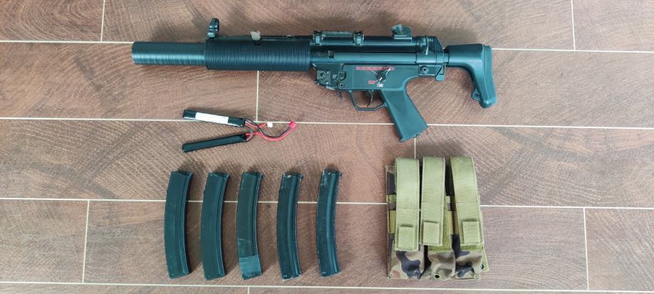 Prodajem airsoft repliku G&G MP5 SD6 full metal sa 5 midcap spremnika, pouchem za spremnike te 7.4 lipo baterijom.
