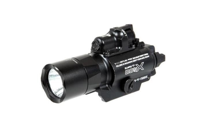 Night Evolution X400U taktička svjetiljka s laserom za pištolj BK se napada baterijama 2xCR123A ili 16340 (nisu u kompletu).