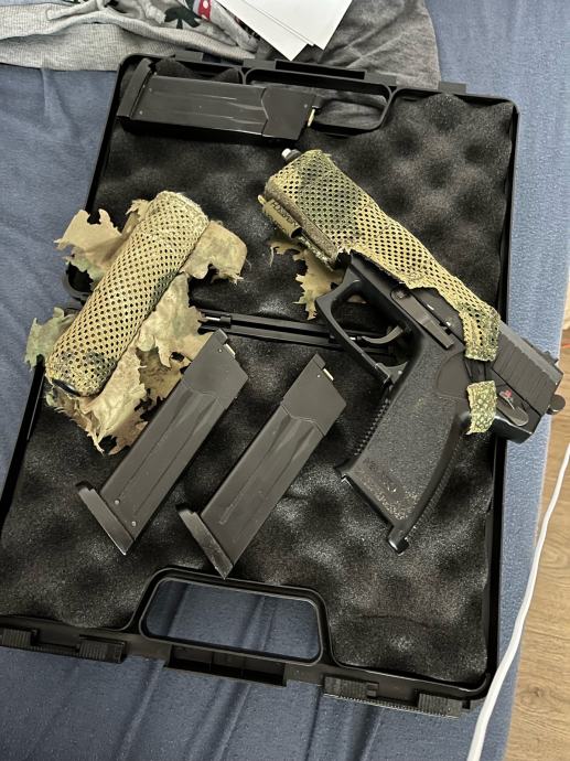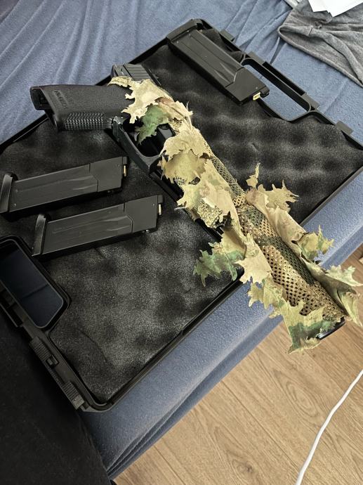 prodajem Novritsch SSX23 sa Gen3 magazinom, Gen2 magazinom i neispravnim Gen2 (sačuvan za rezervne dijelove jer se ne proizvodi više) magazinom. Uz repliku ide i modularni prigušivač i mount za cijev, 3D camo za prigušivač i repliku, tvrdi kofer i holster (bez mounta). Korišten je, ispravan je i nema nikakve probleme.