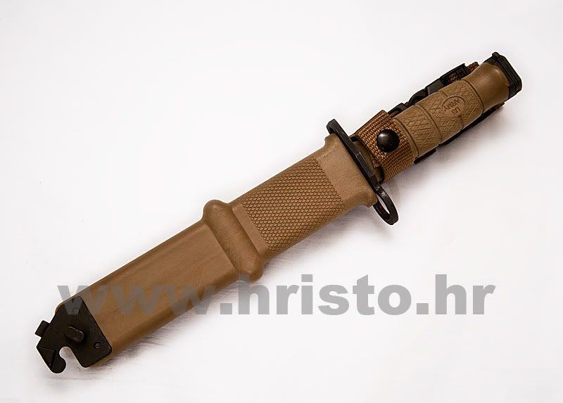 Najnovija i unaprijeđena službena bajuneta američke vojske. Izrađena od 1095 ugljičnog čelika i presvučena cink fosfatom, jamči trajnost, čvrstoću i oštrinu. U kombinaciji s koricama, nož može rezati žicu.