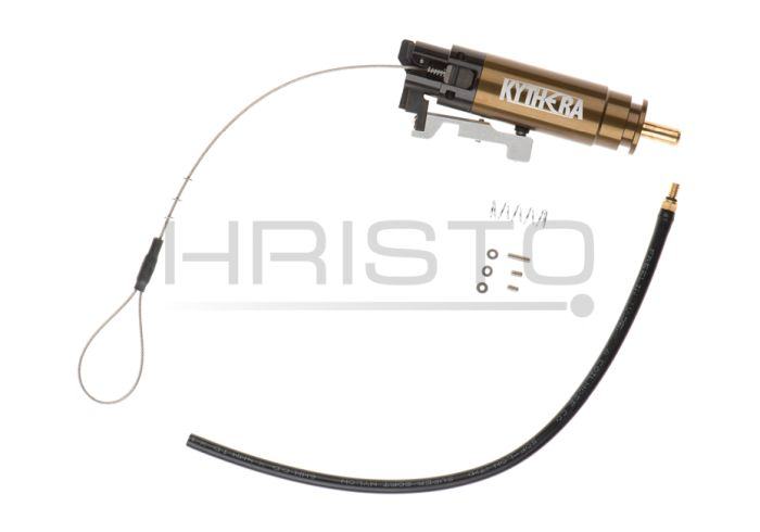 This HPA system fits into a standard gearbox and in most cases does not require any modification to the gearbox shell. It's pressure operation range from 60psi to 180psi and it can perform muzzle velocity of 270 - 500fps w/ .20g using a 6.05x380mm barrel witch make a Kythera a universal solution to the user needs.Shipping weight: 210 g