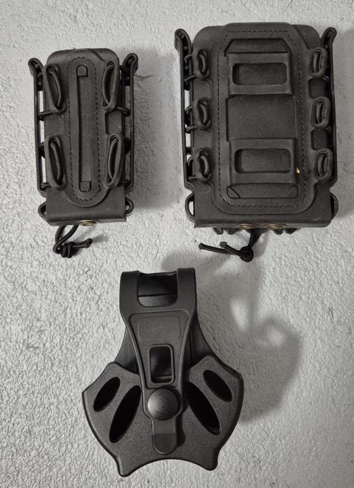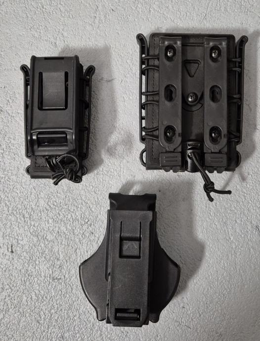Crni pounchevi za moll sistem. Jedan za pištoljski okvir, jedan za okvir m4, jedan za lisice.