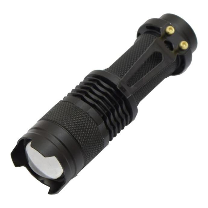 Svjetiljka ima podesivi snop svjetla te mogućnost konstantnog ili stroboskopskog svjetla. Napaja se s dvije CR2 baterije koje nisu uključene u komplet.