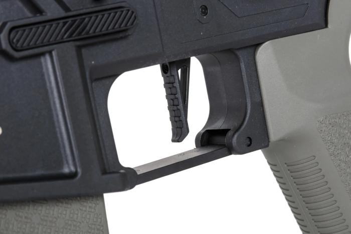Cijev je Specna Arms vlastiti dizajn koji kombinira estetiku i ergonomiju – svaki je element pažljivo izrađen i precizno uklopljen. Model ima povećane kontrole s obje strane (selektor i otpuštač spremnika) te funkcionalan bolt-catch