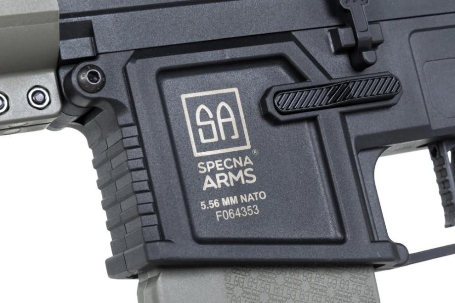 • Cijev vlastitog Specna Arms dizajna, fokusirana na ergonomiju i moderan izgled.
