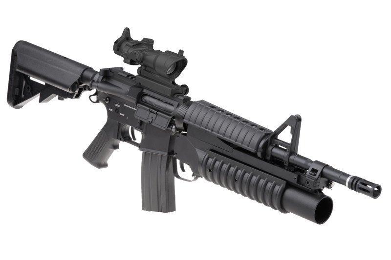 Replika je također opremljena bacačem granata kalibra 40mm koji se puni granatama na zeleni plin.