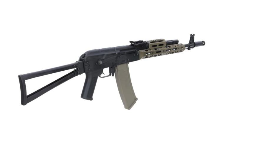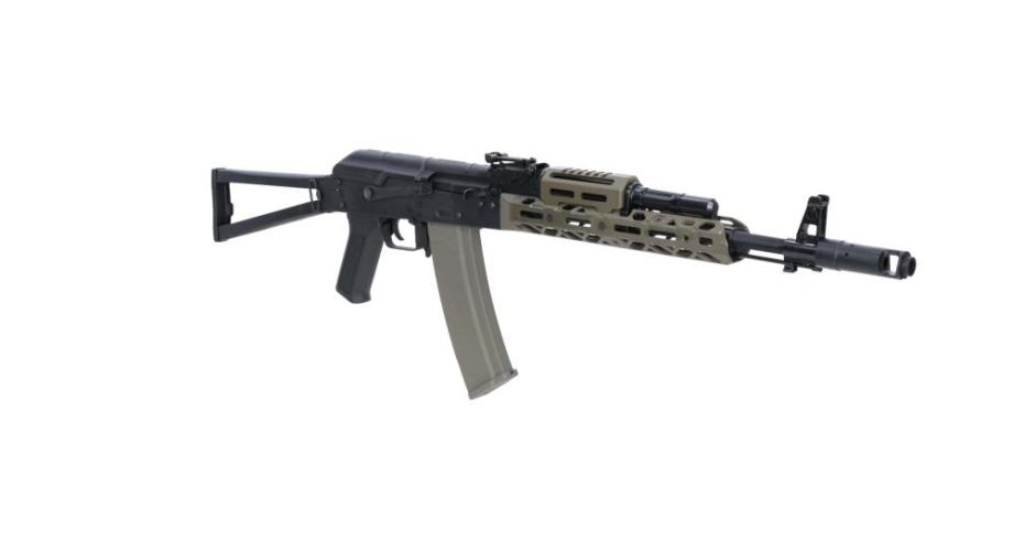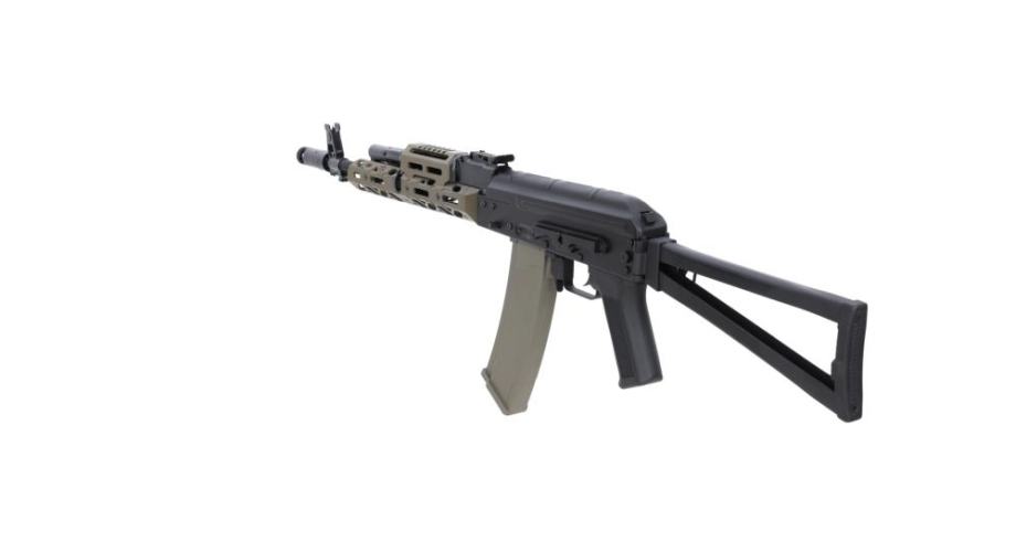 Specna Arms x KPYK SA-PJ13 PRIME™ Aster ETU BLDC™ OD AEG airsoft replika je premium AK-platforma razvijena u suradnji Specna Armsa i ukrajinskog KPYK-a, zamišljena kao izdržljiva, tvornički “pretjunirana” replika spremna za ozbiljnu igru bez dodatnih modifikacija. Konstrukcijski se oslanja na čelično tijelo i čelični preklopni kundak, aluminijski KPYK M-LOK rukohvat i modernu elektroniku (GATE Aster V3 + DarkMatter™ brushless motor), što joj daje realističnu masu, odličnu ergonomiju i vrlo brz odziv okidača.