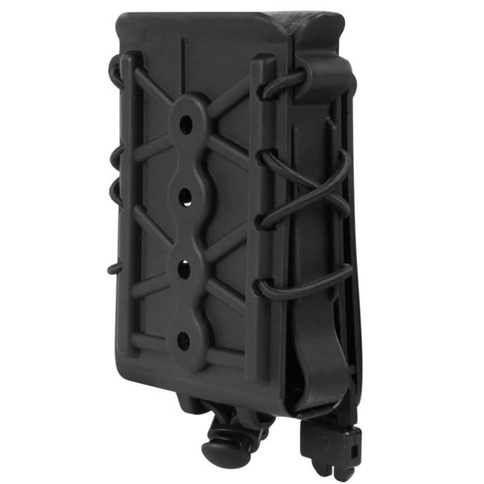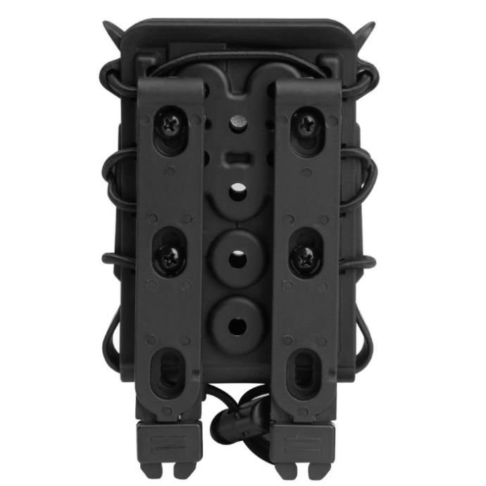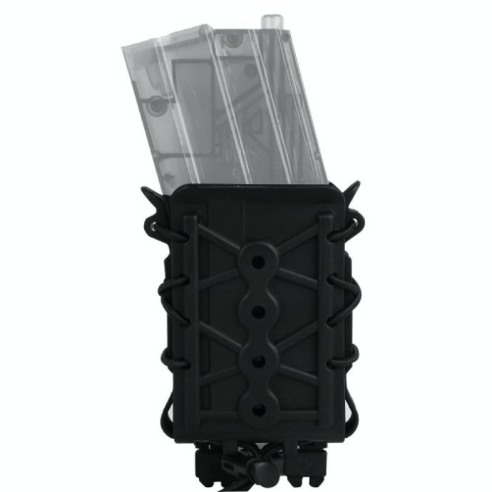 Nosač spremnika, idealan za brzo izvlačenje ali i vraćanje spremnika. Silu zadržavanja moguće je regulirati zatezanjem elastičnog užeta. MOLLE kompatibilan.