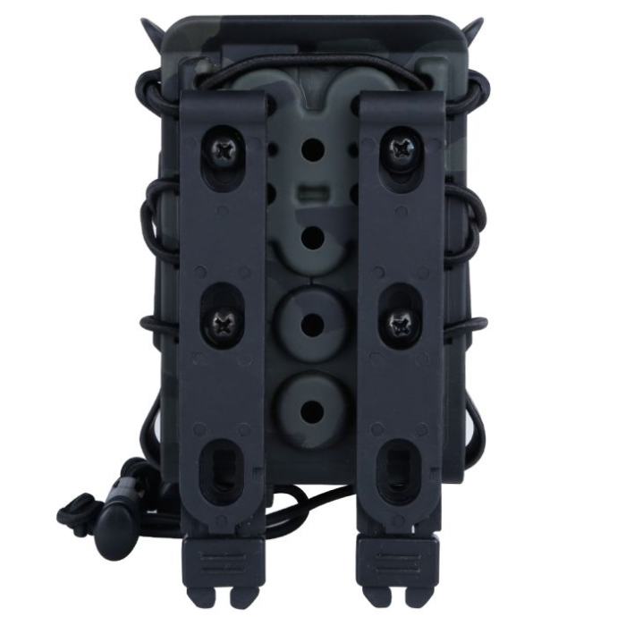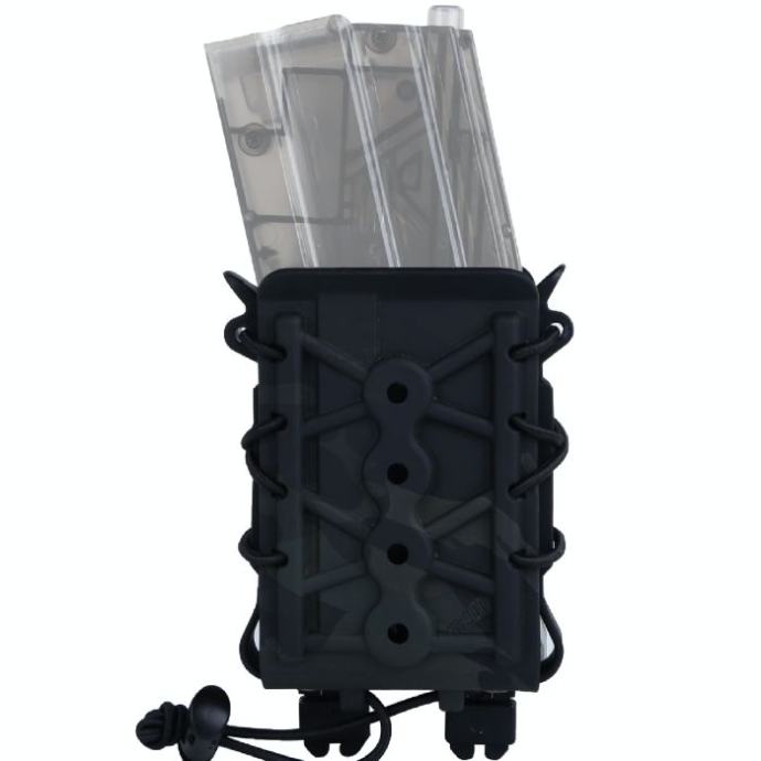Nosač spremnika, idealan za brzo izvlačenje ali i vraćanje spremnika. Silu zadržavanja moguće je regulirati zatezanjem elastičnog užeta. MOLLE kompatibilan.