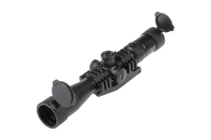 Optički ciljnik promjenjivog uvećanja 3-9x, s osvjetljenom končanicom (crvena, zelena i plava boja, promjenjivog intenziteta). Končanica je SF Mil-Dot. Osvjetljenje se napaja baterijom CR2032 (u kompletu).