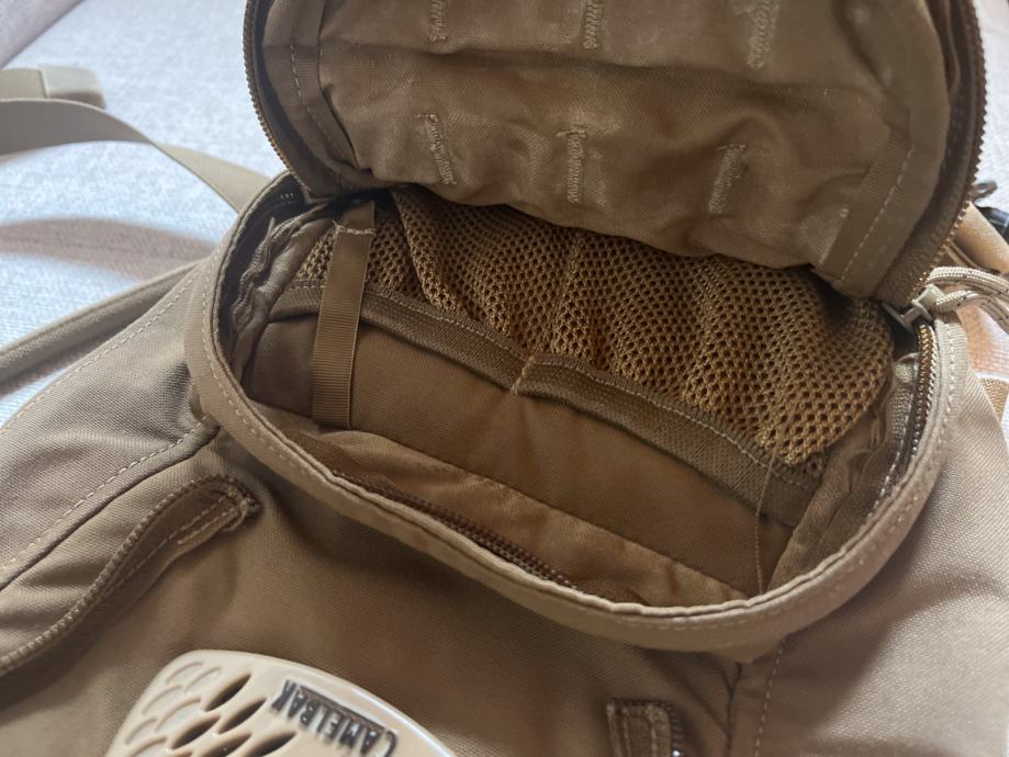 USMC ruksak za hidrataciju, originalna oprema američkih marinaca. Ruksak je korišten (naručen iz SAD-a) sa minimalnim tragovima korištenja, ima potpuno novi Cammelback mjehur zapremnine 3 litre i novu cijev. Koristio sam cijeli set ukupno dva puta.