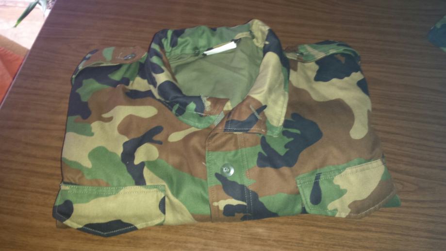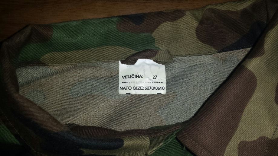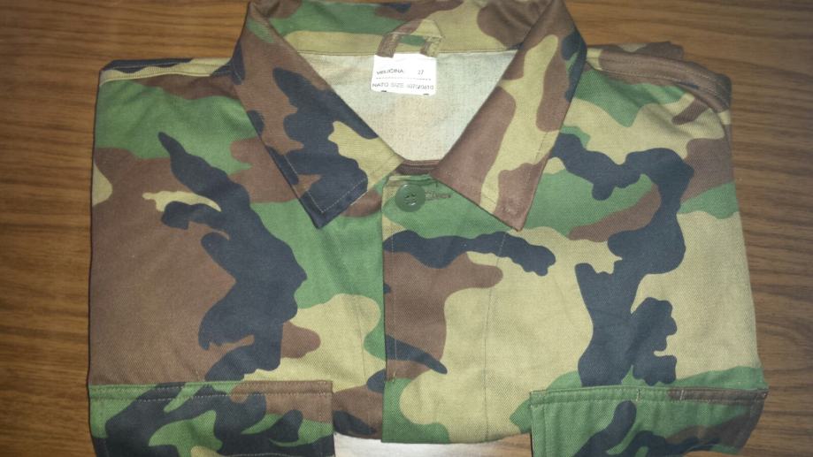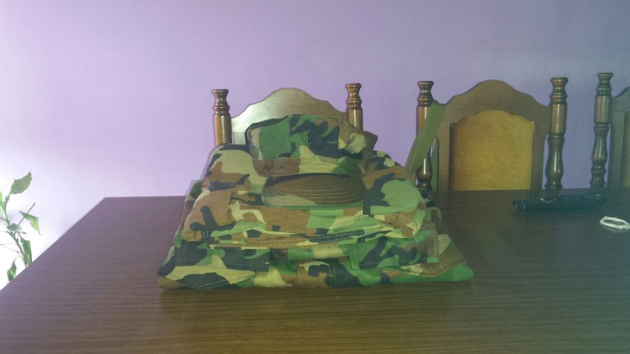 Prodaje se vojna uniforma NATO SIZE vel.54 nova ne korištena.U kompletu se dobije jakna,košulja,hlače,kapa,podkapa(fantomka) i porcija za jelo u kojoj se nalazi čuturica za vodu u maskirnoj torbici koja ide na opasač.Sve zajedno se nalazi u transportnoj torbi.To je noviji kroj i uniforma je orginal vojna i kvalitetna.Stoga ako nekome treba za airsoft ili paintbal,a može i za lov i ribolov može slobodno nazvati.Moguča prodaja i svako zasebno sve stvar dogovora,a moguče i kompenzacije pod račun.
