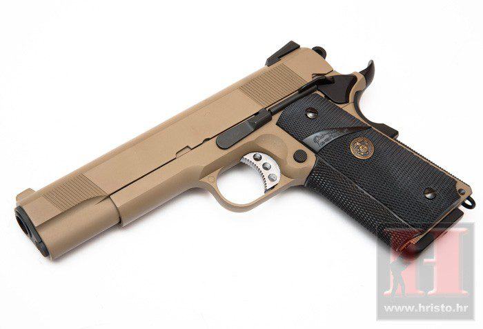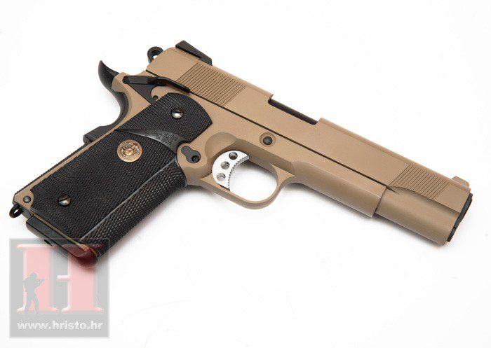 Impresivna izvedba klasičnog 1911, u modernoj SOCOM M.E.U. varijanti i popularnoj TAN boji. U kombinaciji s crnim dijelovima čini izuzetno dopadljiv dizajn, no ne treba zanemariti ni tehniček aspekte ove replike: full metal, blowback, s pouzdanim i provjerenim mehanizmom rada.