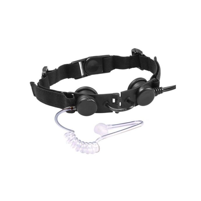 Tactical Throat Mic ima podesiv remen za vrat i opremljen je mikrofonom i vodootpornom slušalicom.