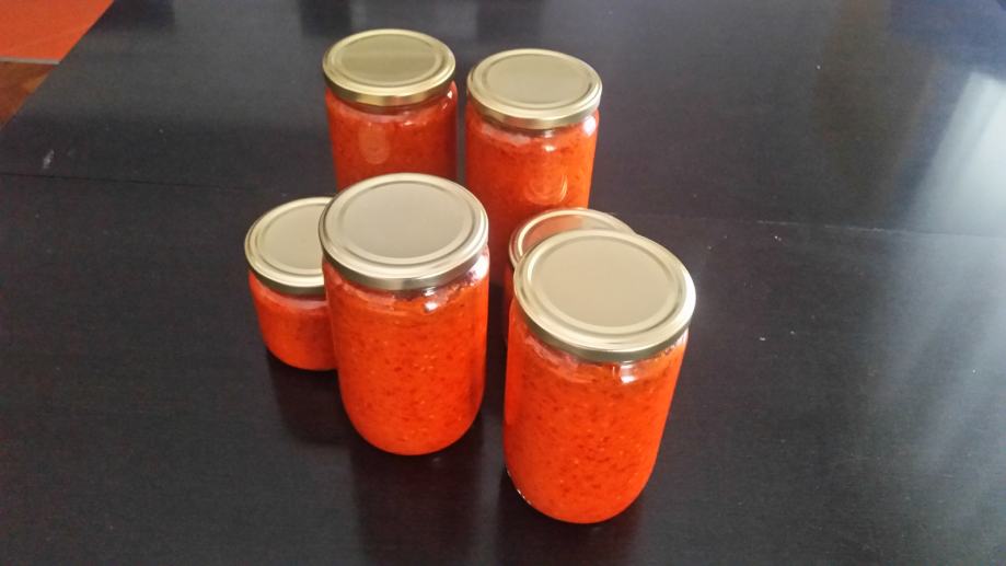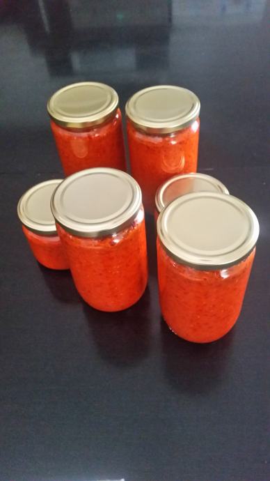 Prodajem domaći ajvar blagi i ljuti, pripravljan po staroj recepturi od paprike i ostalih sastojaka iz vlastitog uzgoja, izvrsnog je okusa,