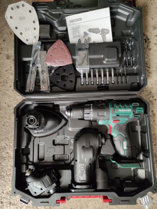 PARKSIDE 20V 4-U-1 PKGA 20-Li C3 Bušilica, Sabljasta pila, Brusilica, renovator. Bez baterije i punjača.