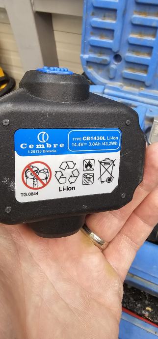 Dolazi u orginalnoj kutiji, sa Novim Cembre punjaćem i dvije Cembre li-Ion 3,0 Ah baterijama .