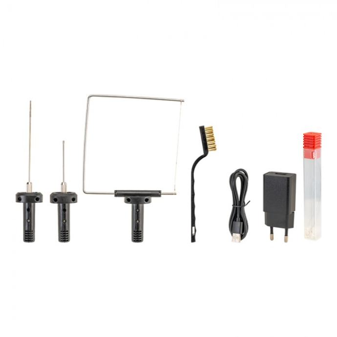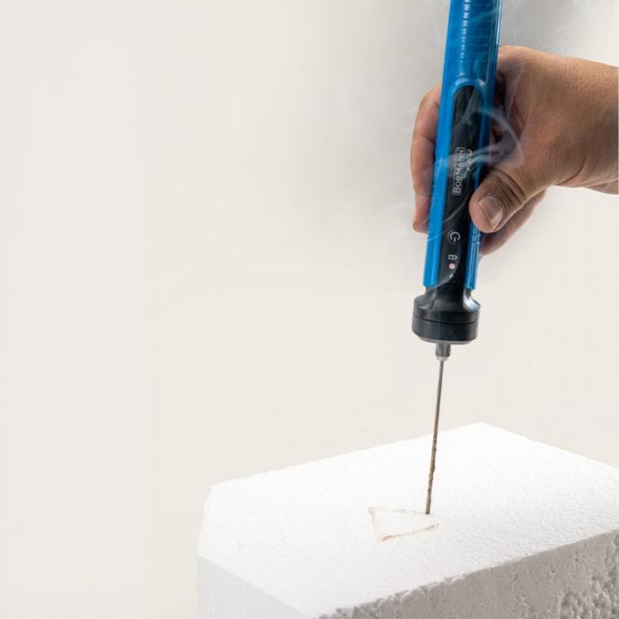Aku rezač za EPS Bormann BTC6005 PRO omogućuje izuzetno precizne rezove i gravure pod različitim kutovima na EPS-u, pjeni i mekim plastikama, bez drobljenja materijala, idealan je za izradu arhitektonskih modela, prototipova i sve klasične primjene, zagrijava se za manje od dvije minute i nudi mogućnost podešavanja temperature rezanja, dolazi s baterijom kapaciteta 2.2Ah (Li-ion) i naponom 3.7V, punjačem od 9.5V/0.5A koji puni bateriju za 5 sati, duljinom grijaće žice od 10 cm, težinom od 0.6 kg, te uključuje tijelo rezača, oštrice od 5 i 10 cm, F-tip grijaću žicu, grijaću žicu, punjač, postolje i četku.