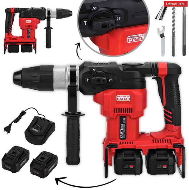 Sustav SDS-PLUS omogućuje brzu izmjenu pribora bez dodatnih alata, dok spojka za preopterećenje štiti korisnika i mehanizam od zaglavljivanja svrdla. Ergonomski dizajn i rad bez kabela osiguravaju slobodu kretanja i veću udobnost čak i u skučenim prostorima.