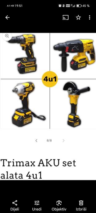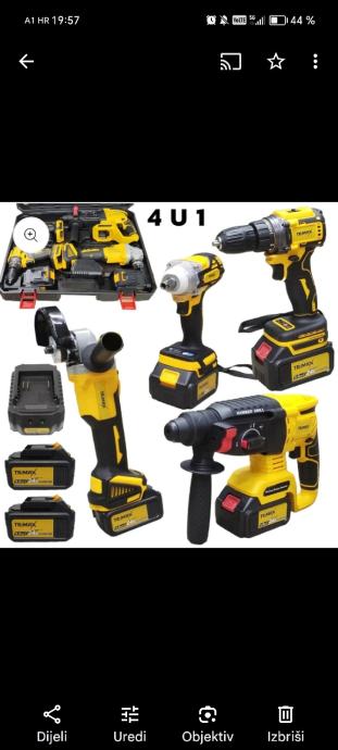 Težine alata bez baterije na slikama pojedinačno u gramima, zadnje slike, ovaj set bio izložbeni na sajmu alata !