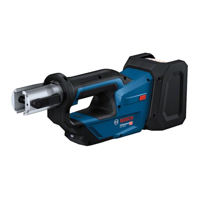 Bosch GPT 18V-19 Professional je kompaktan akumulatorski alat za prešanje koji pruža snagu od 19 kN, idealan za rad u skučenim prostorima. Odlikuje se iznimno brzim ciklusom prešanja koji traje manje od 3 sekunde, a namijenjen je za metalne cijevi do 35 mm i plastične do 40 mm promjera. Glava alata rotira za 360° što omogućuje jednostavno manevriranje u uskim prostorima, a dodatno LED svjetlo osvjetljava radnu površinu. Posebno se ističe LED indikatorom statusa koji pruža vizualnu povratnu informaciju o ciklusu prešanja, potvrđujući uspješan ciklus i upozoravajući na potencijalne pogreške. Kompatibilan je s kompaktnim Bosch čeljustima za prešanje, R-System čeljustima i drugim odobrenim čeljustima za prešanje. Alat je dio Bosch Professional 18V sustava i kompatibilan je s AMPShare višerobnim baterijskim savezom, a dolazi s jedinstvenim poklopcem koji pruža optimalnu zaštitu baterije. Solo model – isporučuje se bez akumulatora i punjača