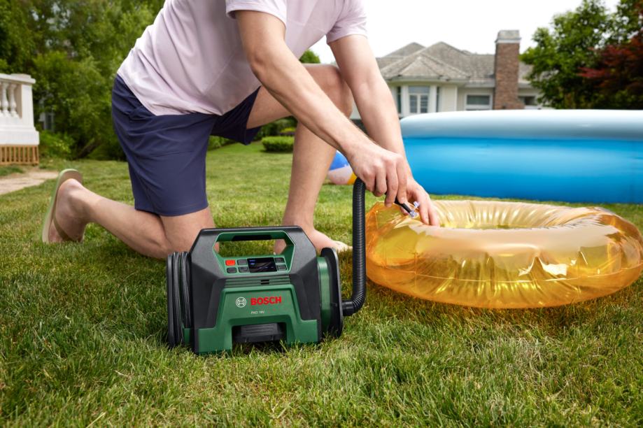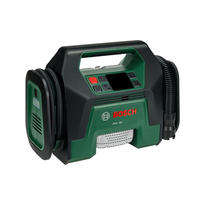 Akumulatorska zračna pumpa PAO 18V snažan je i praktičan alat za napuhavanje guma, velikih napuhanca i drugih zračnih objekata. Zahvaljujući radu na 18 V akumulator, pumpa omogućuje tlak do 10 bar (150 psi) i maksimalnu izlaznu količinu zraka od 30 l/min. Kompaktne dimenzije i težina od 2 kg čine je jednostavnom za transport i rukovanje, a crijevo duljine 0,7 m omogućuje jednostavno spajanje na ventil. Pumpa je kompatibilna sa svim akumulatorima iz serije 18V POWER FOR ALL ALLIANCE, a preporučena kapacitet akumulatora je 1,5 Ah ili veći. Solo model – isporučuje se bez akumulatora i punjača